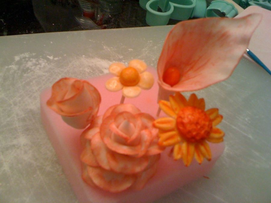 This is my first attempt at sculpted flowers, and my first attempt at gumpaste, period. I need a lot of work!
