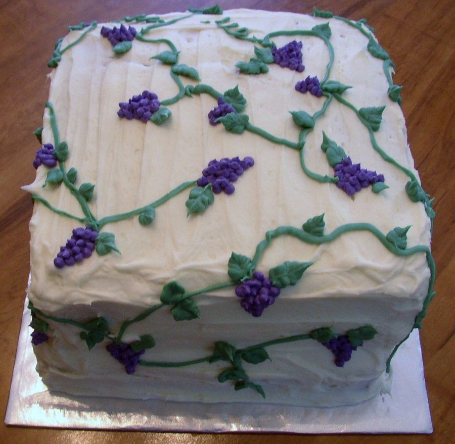 Pumpkin cake with creamcheese buttercream decorated with grapes for the decoration.