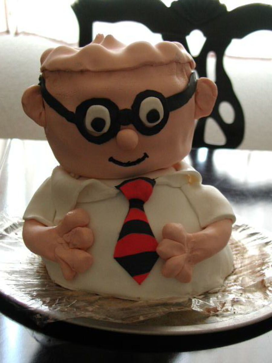 Dilbert cake for my dad, poor thing is leaning. Chocolate cake with Fondand accents. All cake