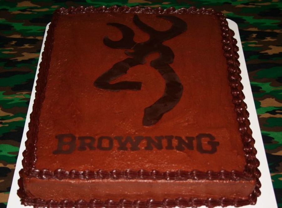 thanks to jlsheik for this idea. the bride and groom showed me this picture and it helped that i was able to find it on cc. This is a chocolate sheet cake with chocolate syrup frosting and a chocolate transfer for the logo and deer head.