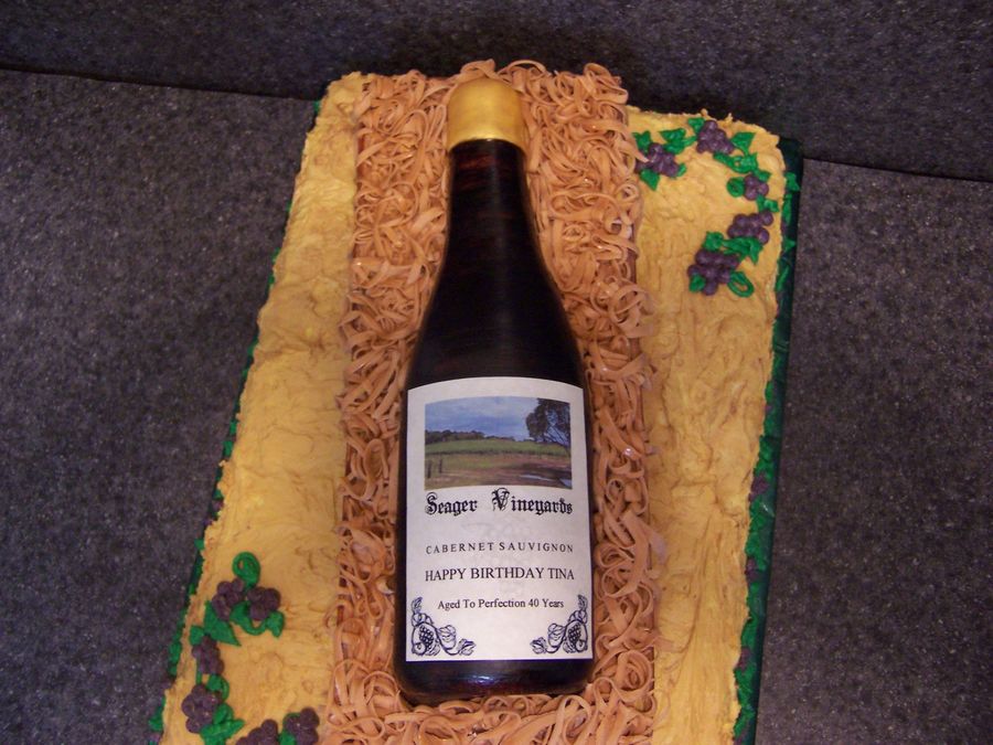 B-Day cake for my friend who loves Olive Garden. Wine bottle is made of fondant.