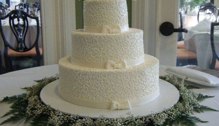 Ivory icing, with pink cornelli lace and brown fondant ribbon borders. All fondant is 50/50 mix with gumpaste. I pearlized the cake (airbrushed super pearl luster dust over the cake) for sheen.