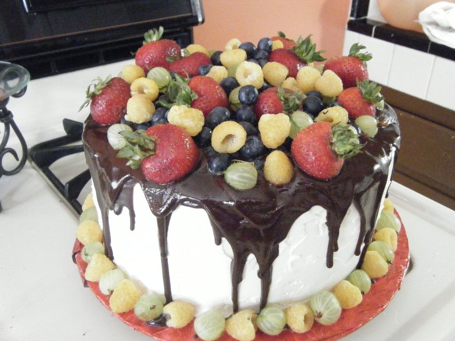 Chocolate cake, white chocolate buttercream, chocolate ganache and fresh berries. This was a real crowd pleaser. YUMMY !!!
