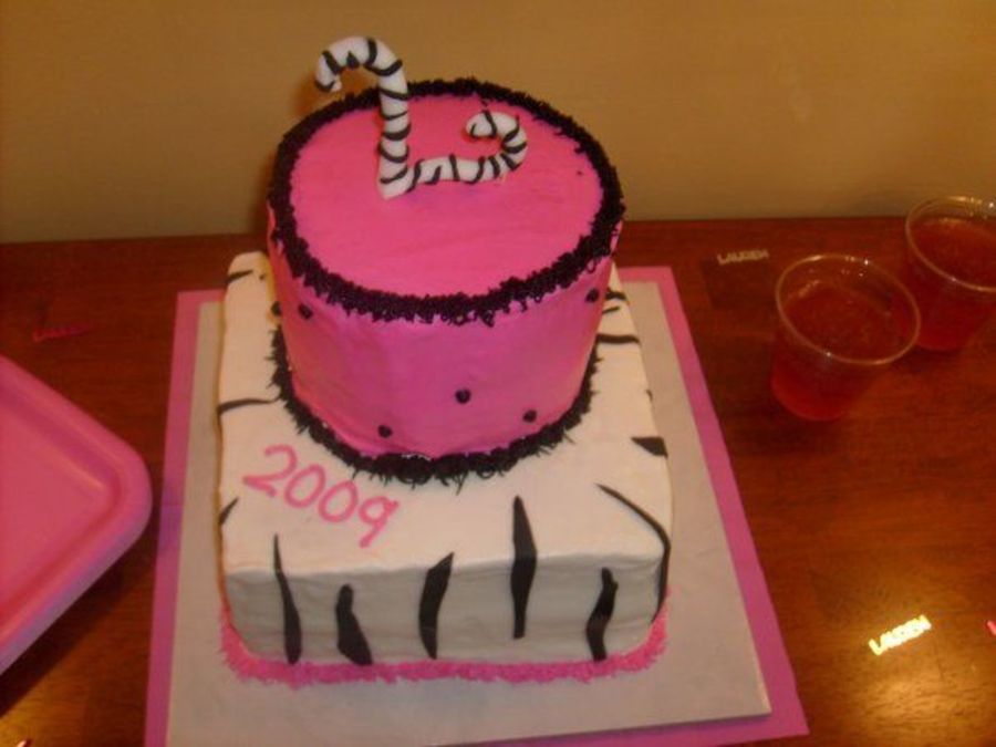 Graduating girl wanted zebra stripe and hot pink so this is what I came up with. I made the L out of fondant. The stripes were fondant as well. She was thrilled with it.