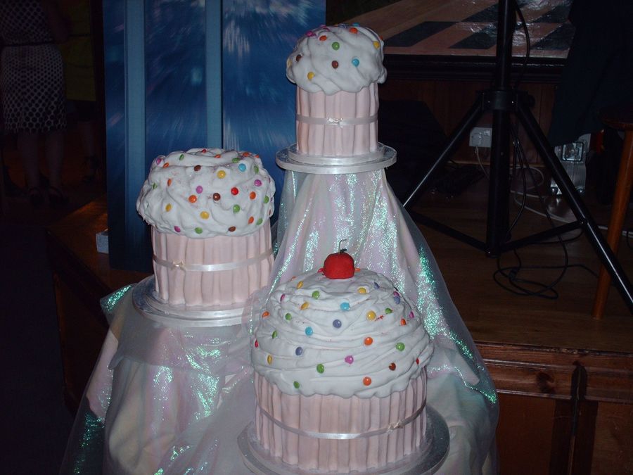 3 large wedding cup cakes with smarties