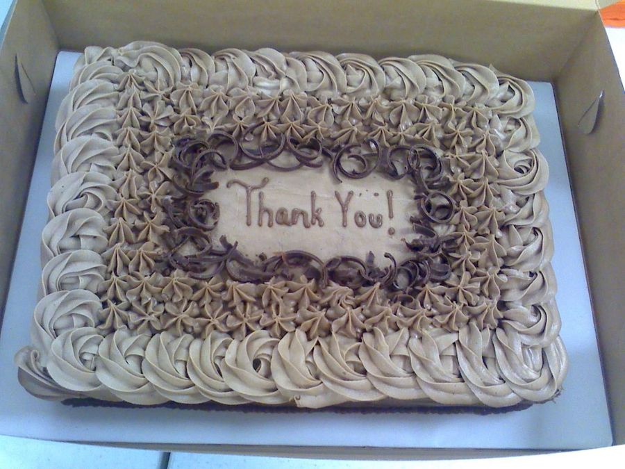 Teacher appreciation cake for my son's school. Cake is butter fudge with oreo filling and chocolate buttercream dream. I couldn't figure out what to do on the top so I just put the swirls and some chocolate shavings. Thanks for looking.