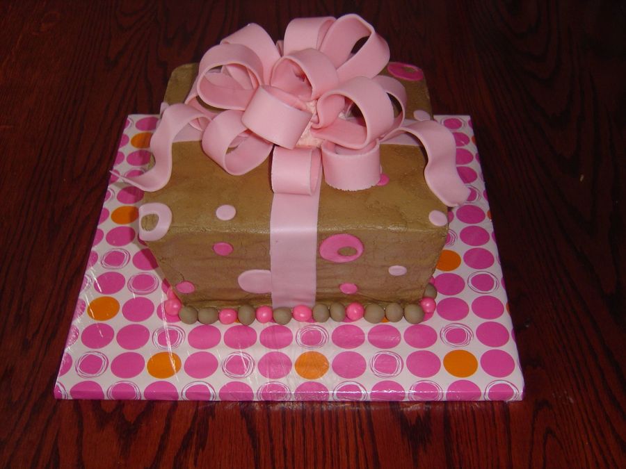 I "threw" this one together for a friend's birthday; only my second bow. I was pretty pleased with how it turned out, but by the time we cut the cake, the bow was "deflating" from the moisture in the frosting. Neapolitan cake with chocolate BC, and strawberry BC filling. MMF accents/bow.