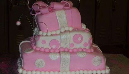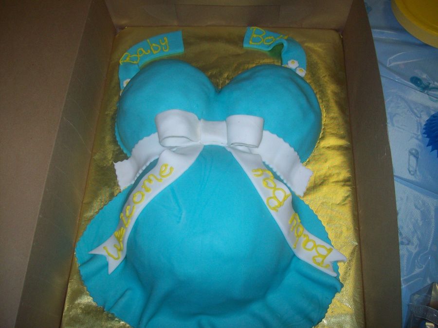 i used the scorrer ball pan for the stomach and the small 3-d ball cake pan for the breast. it's yellow cake filled w/ creme" bouquet flavor buttercream and covered w/ fondant