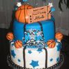 Top layer is chocolate cake with chocolate feeling the bottom layer is Butter cake with butter cream feeling. Decoration are made with Fondant and Gum paste. I had problems with the fondant, it was getting very dry and it was breaking... I think due to the humidity here in Florida?? But overall I'm happy with the cake.