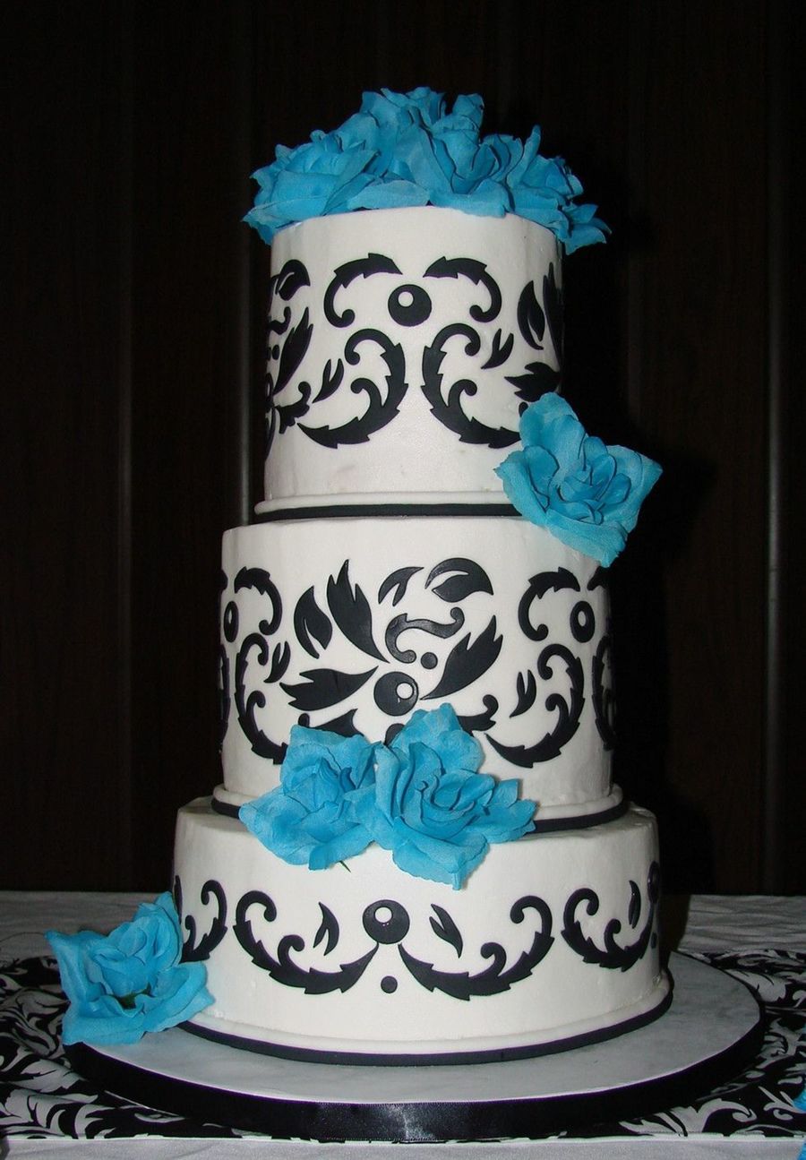 6, 9, 10 inch in buttercream with demask design in fondant.