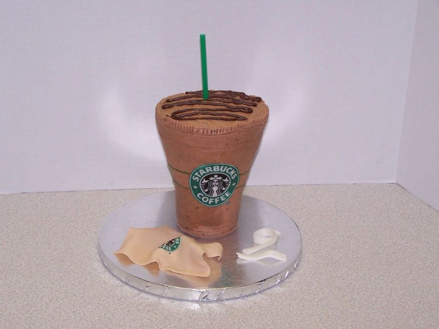 This was ordered by a man who wanted a Starbucks cake similar to the other one in my gallery, but said his wife's favorite drink was a "no whip, java chip frappachino with chocolate drizzle. This is a chocolate-chocolate chip cake with chocolate-vanilla bc with semi-sweet chocolate shavings mixed in. It's 3", 4" and 6" layers carved. Edible images for the logo. Fondant "napkin" and "straw wrapper". The straw is real. TFL!