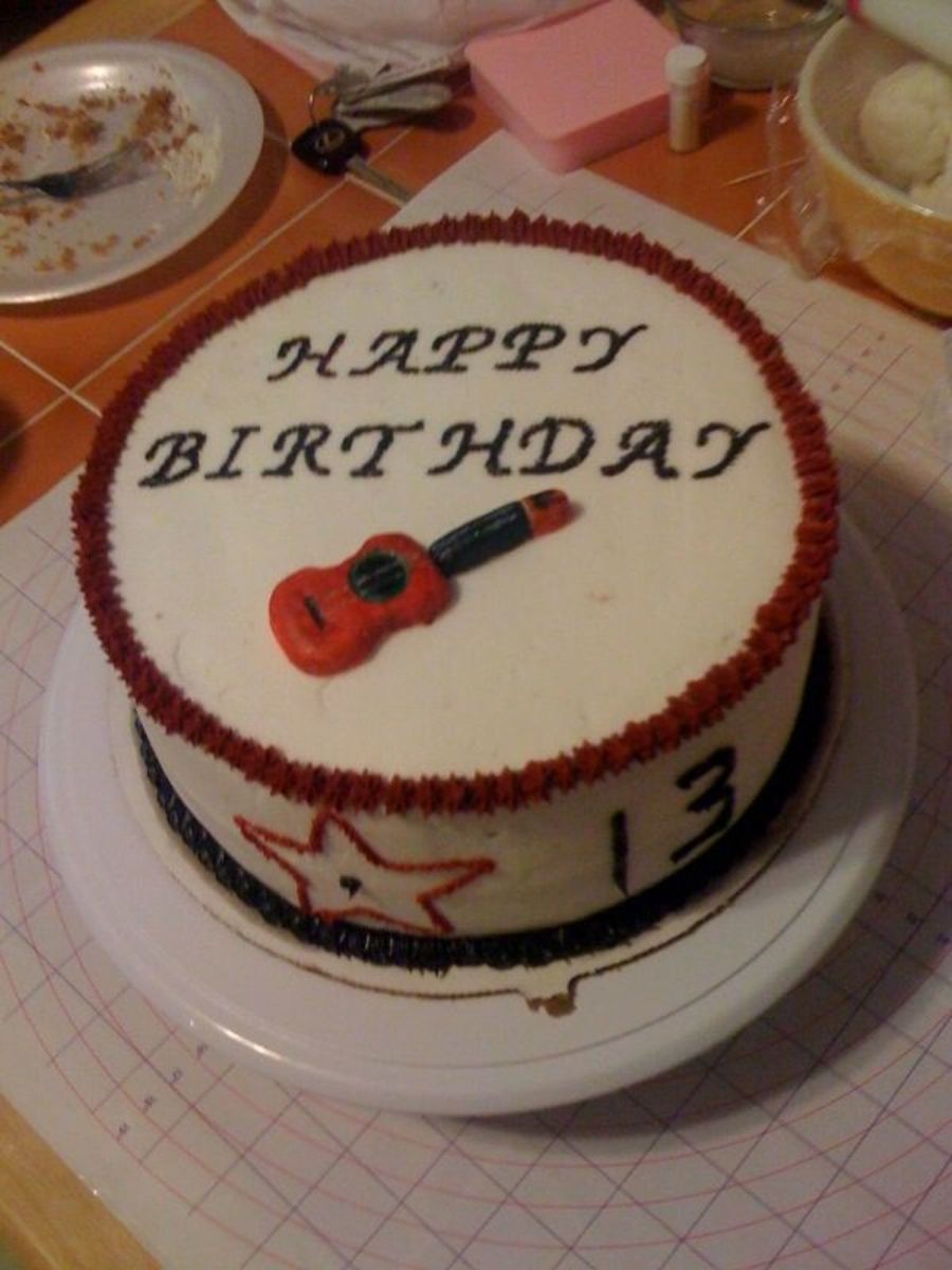 Yellow cake, buttercream frosting, fondant guitar
