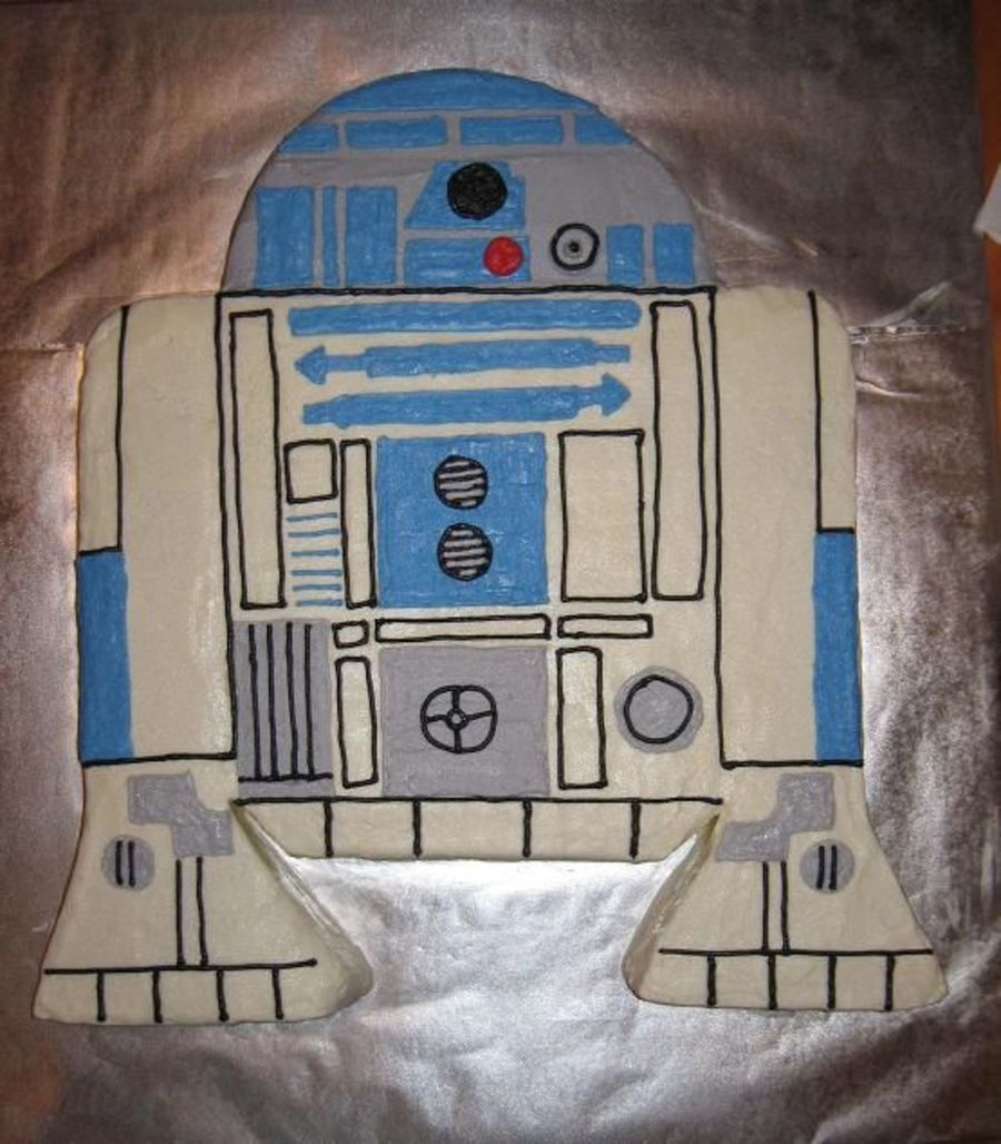 A 2-D cake in the shape of R2D2. All buttercream icing.