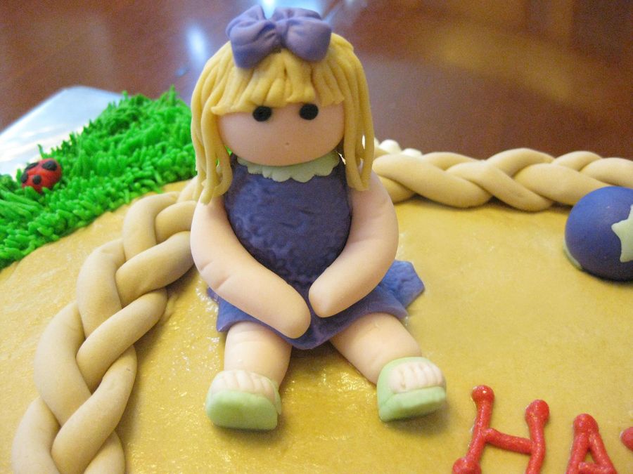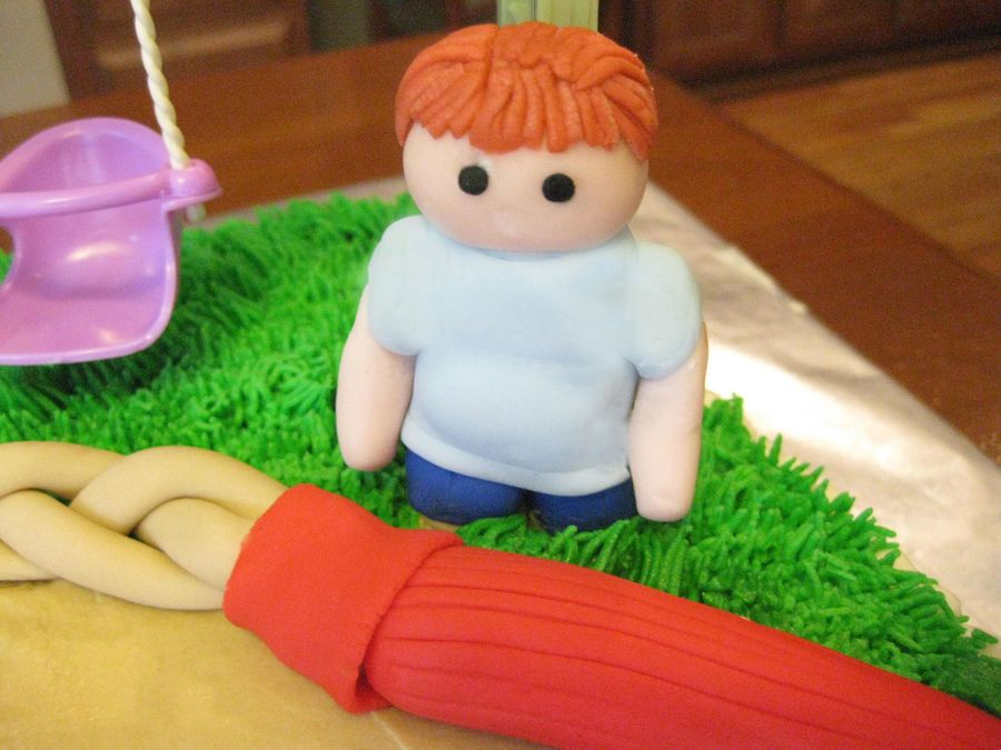 This is a buttercream cake decorated with fondant figures and fondant decorations. I tried to make everything edible but my fondant swing broke lol