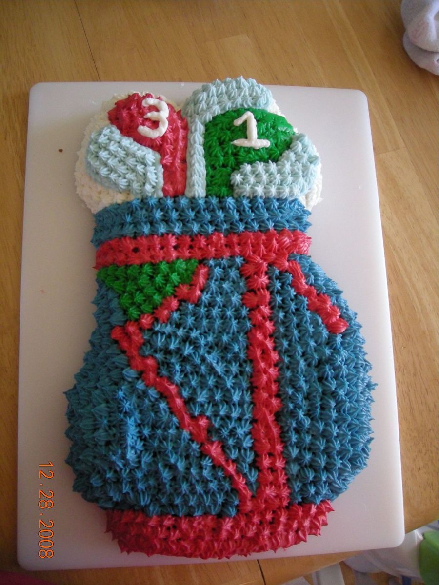 My 3 year old is in love with golf. This was for his birthday. My first shaped cake