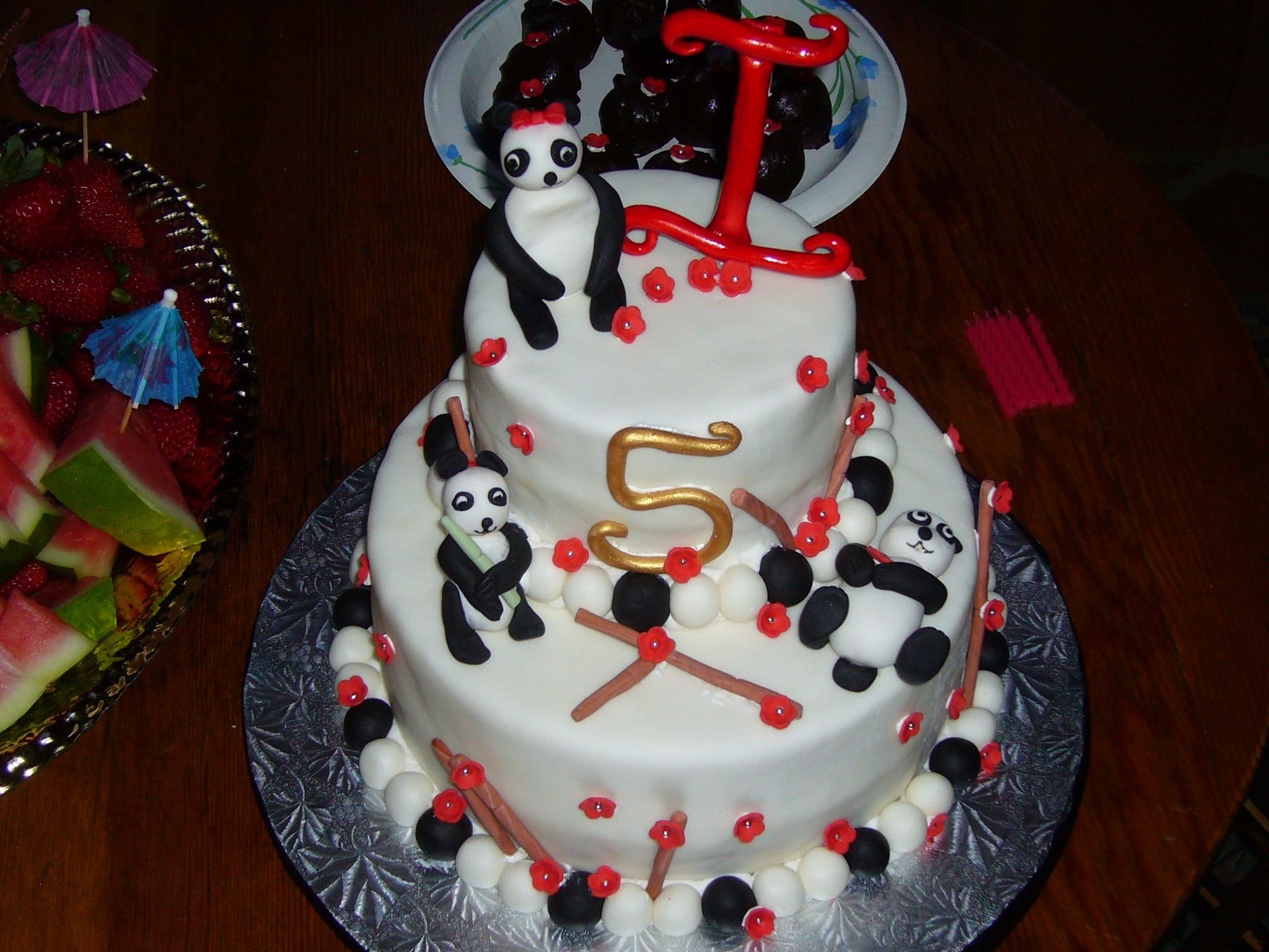 This was for my neighbor who was turning 5. She was having a panda/chinese themed party. It's chocolate chip cake with chocolate buttercream filling. All the decorates are MFF and gumpaste. Third time making fondant animals. I really enjoyed making this cake and the birthday girl loved it!