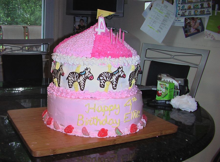 The birthday girl (my neice) wanted a pink zebra carousel cake with strawberries and watermelons.