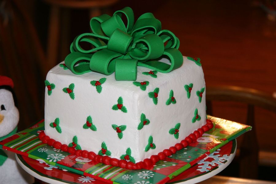 I made this cake for our Christmas get together with friends. I used my new plunger cutters for the holly on the cake. Fondant bow.