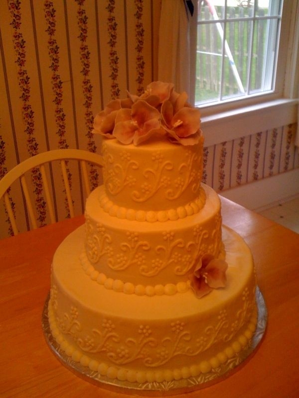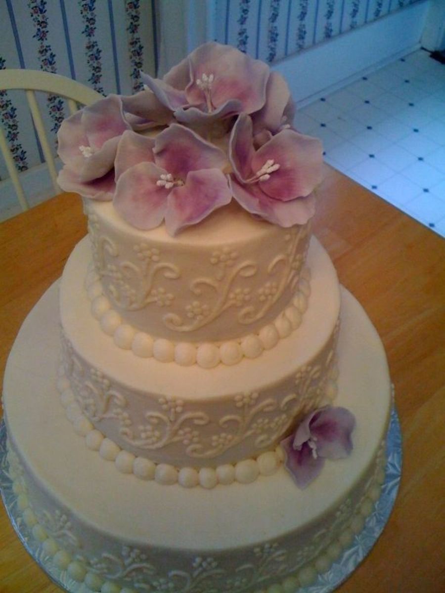 WASC and Chocolate cakes with buttercream. Flowers are gumpaste.