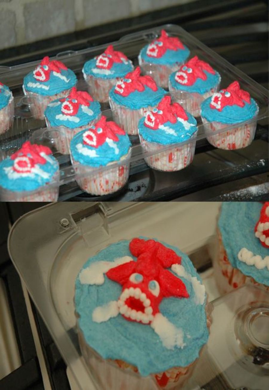 These went with the mermaid cake I did for my daughter's 4th birthday. The idea came from The Cake Ninja website. It was a last minute addition to the cake, and I did not have my cake supplies with me, so I made them pink. I do not know if they look so much like sharks, but the kids loved them. I placed them around the cake like they were the mermaid's protectors.