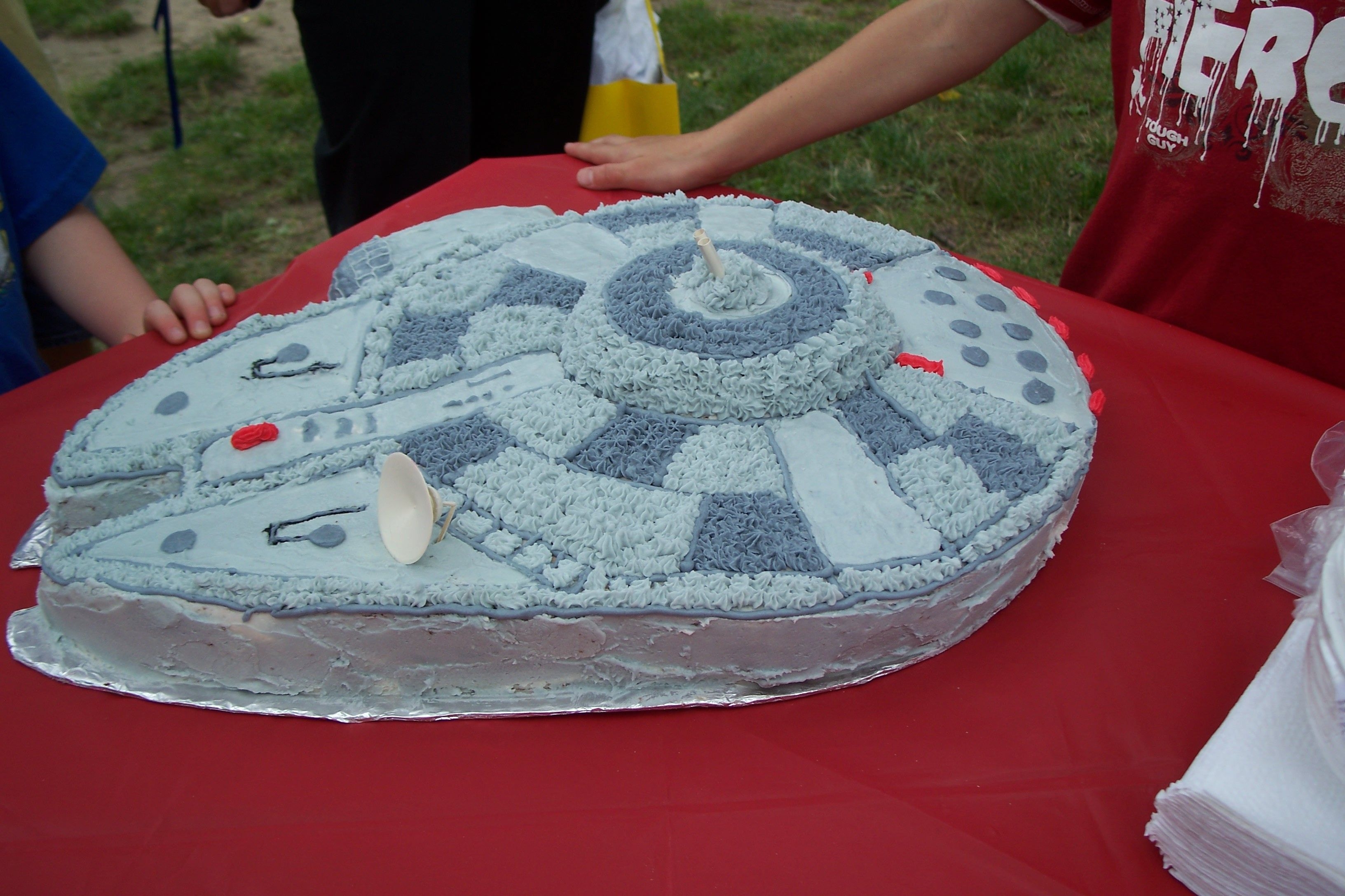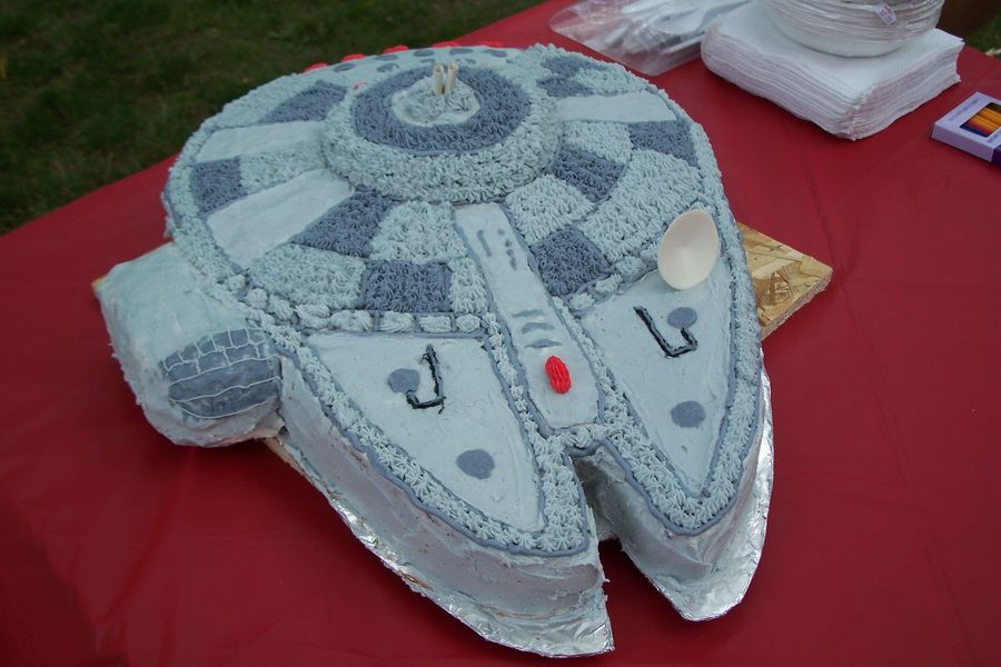 Thanks to Heathercollins0614 for this inspiration! I used 14" round pan, and 2, 13 X 9 pans to cut the pointy pieces, and the cockpit, and a 6" round pan (cut 1 inch high) for the upper deck. All chocolate cake, All buttercream frosting. I ran out of time so I didn't get to "Viva" the smooth sections and the sides. I would have liked to have done more detail on the sides too. Still, my 7 year old grandson (and his guestsand their parents) were very impressed. I had trouble molding the radar screen, the guns and turet out of Royal Icing, so I improvised by using 2 cut straws in playdoh - dried and spray painted. The radar screen was a new suction cup, spray painted and inserted with a toothpick. The cockpit windows could have been better if I didn't have such a shakey hand. I turned 68 on Friday.....not as young as I used to be!!