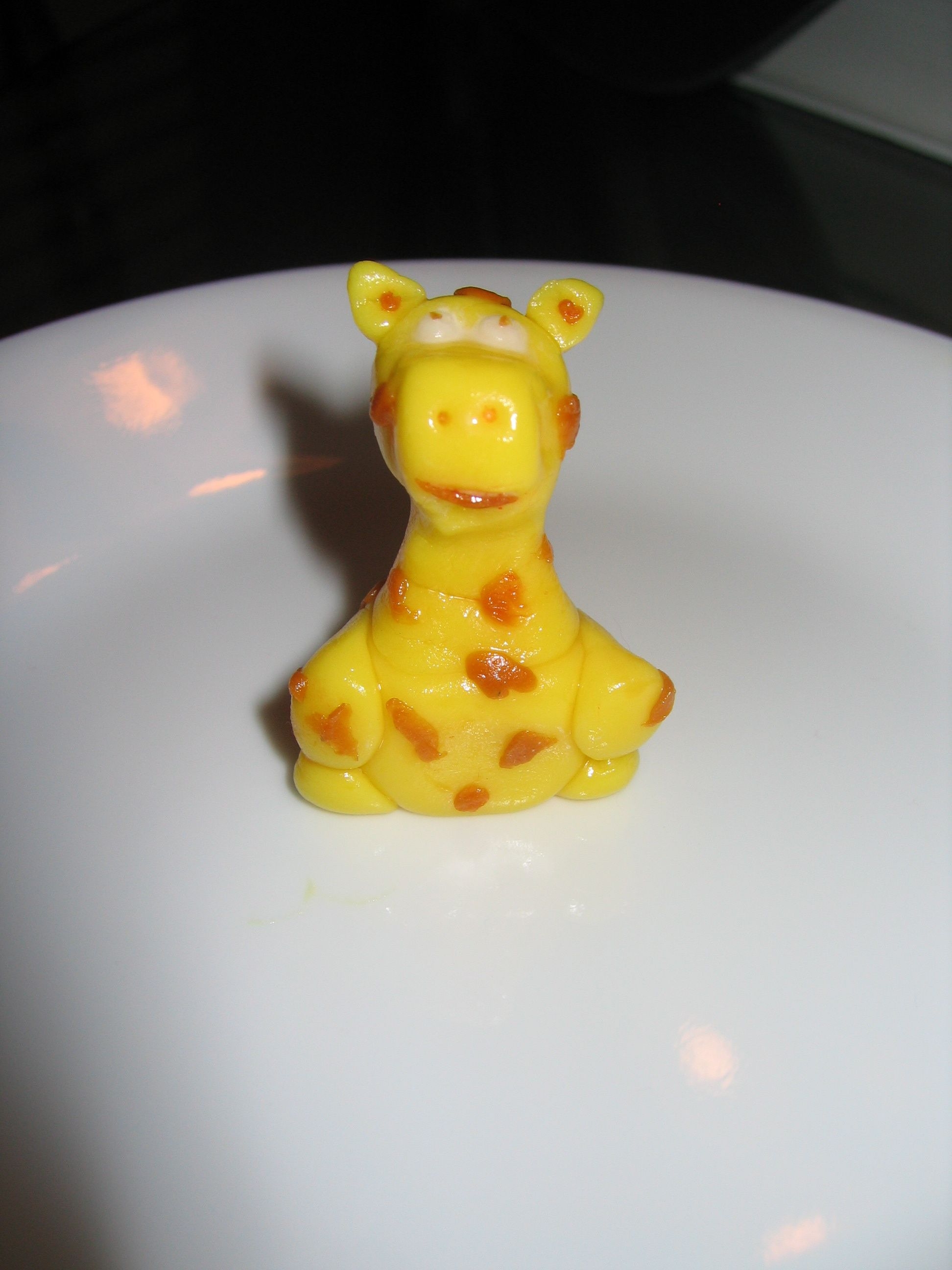 Hmmm...I made this giraffe with older fondant that I kept adding shortening to so it would be so dry...it went a little bit down hill from there. I almost didn't put the picture on but I figure that I'm a beginner so it's ok. :) Thanks for checking it out.