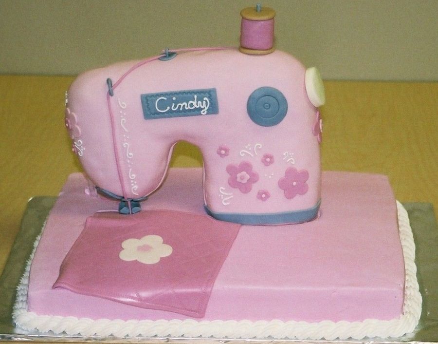 I copied another cake on here (at a coworkers request), please forgive me but I can't remember their name. This photo was taken after the cake had been sitting for a while and the sewing machine started to sag (which I'm sure had help) and is being propped up with a plastic knife. My coworker really liked it. RKT covered in MMF.