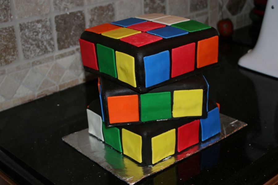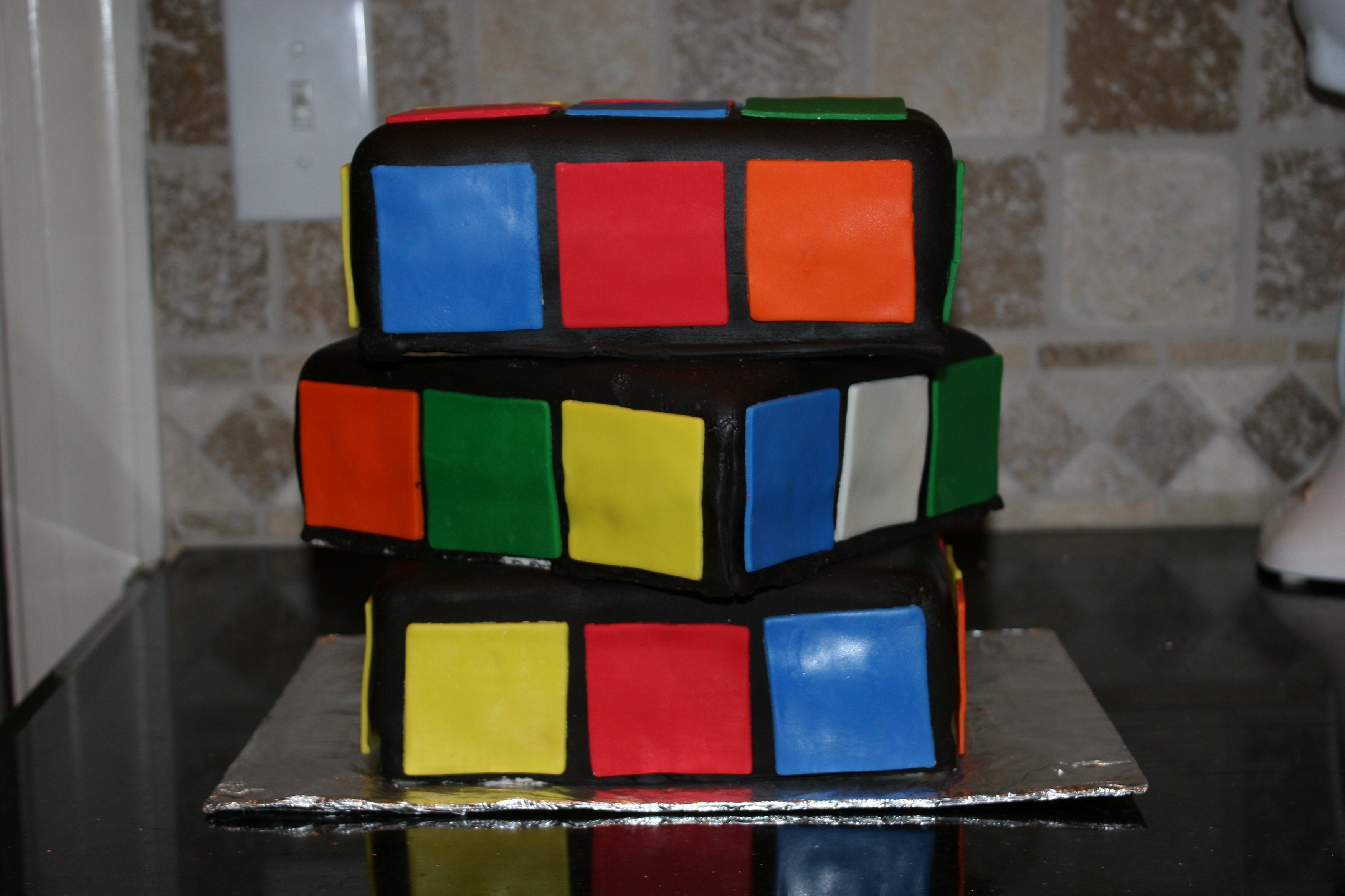 Cake layers top to bottom; yellow, strawberry and white chocolate with white chocolate chips. Strawberry buttercream icing covered in dark chocolate fondant and fondant squares. This was only my fifth cake so I did not have high expectations but am very happy with the way it turned out. Thank you everyone for inspiring me every day!