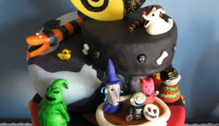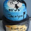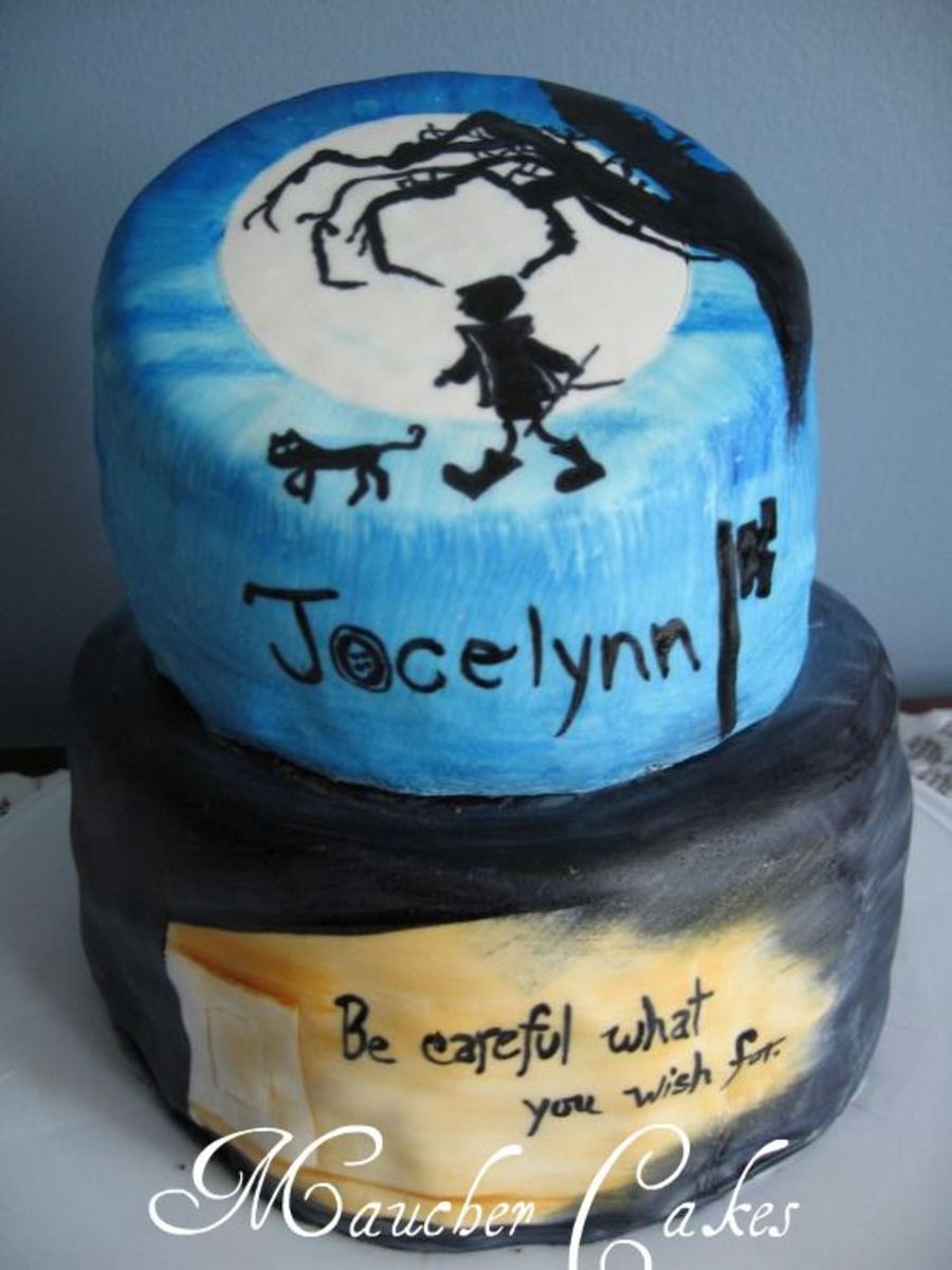 Choc. cake with PB mousse and choc icing. Scenes painted on fondant. I am no longer doing cakes during the summer due to fondant problems.