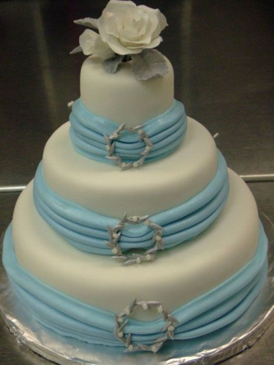 Done for school, the theme given was Winter Ice; fondant covered, sugarpaste roses and detailing.