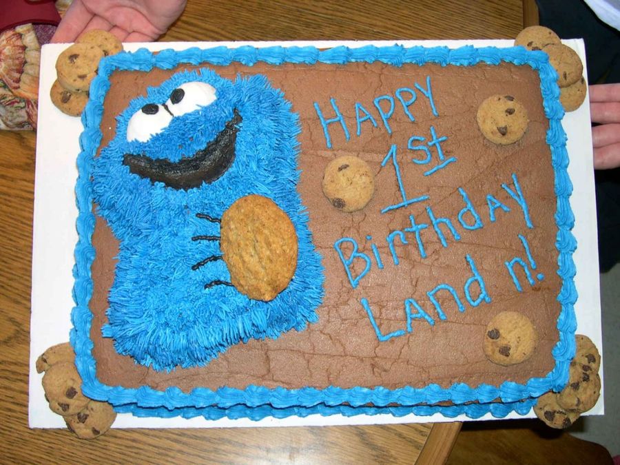 very cute cake.....can I ask a question?? not to be rude...did u forget an "o" in Landon? or is that the name? did you free hand the cookie monster? that is very good!!