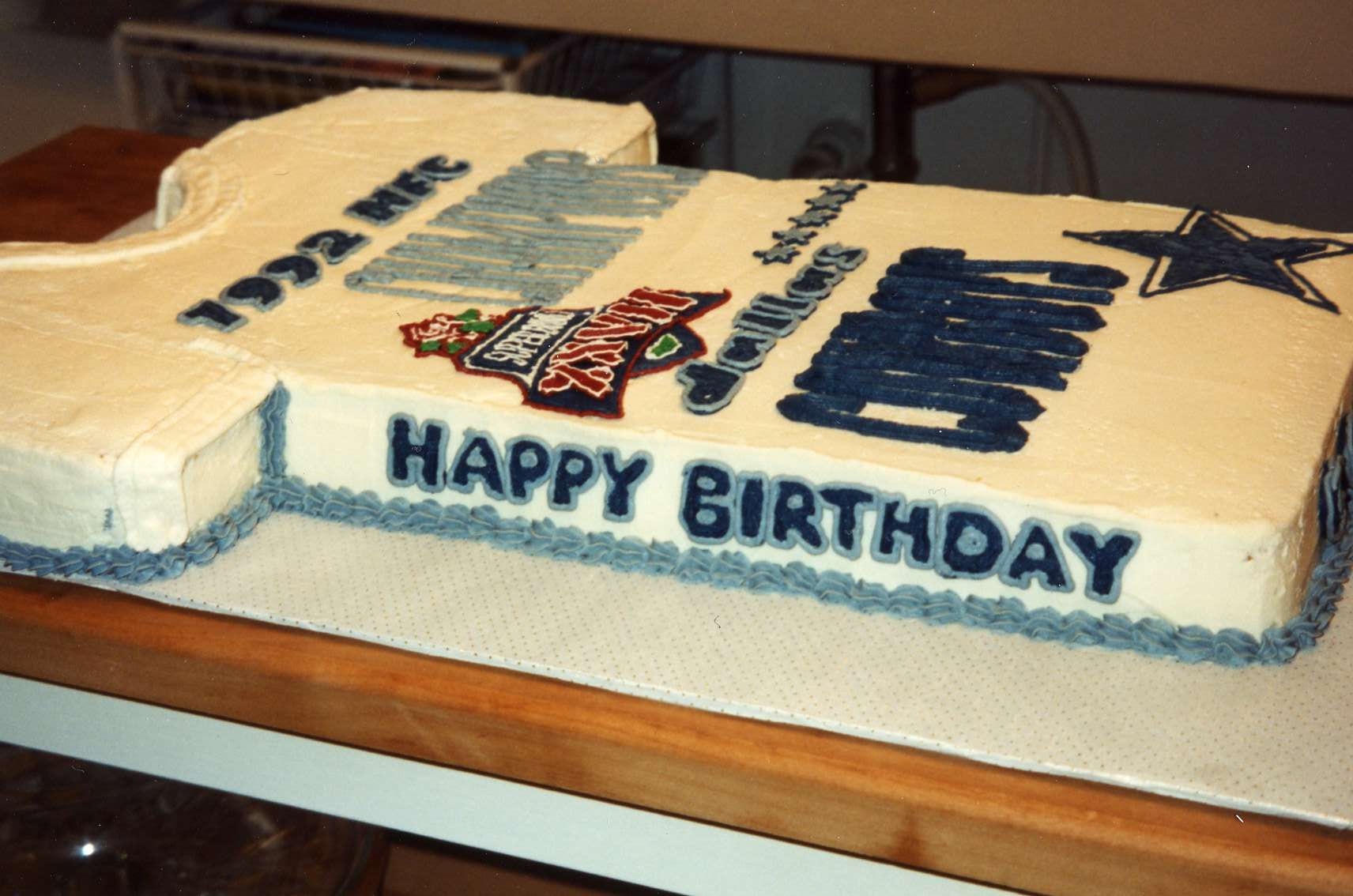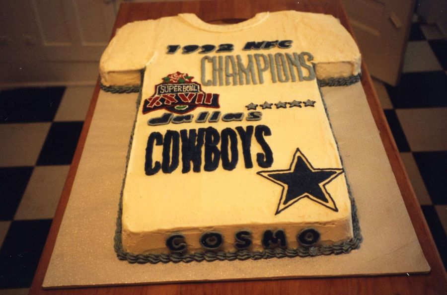 This cake was inspired because of a bet made by Cosmo who bet that the Dallas Cowboys would NOT win the Superbowl Championship that year. He said if they won he would eat a Dallas Cowboy T-Shirt. Well, needless to say, he did have to eat a Dallas Cowboy T-Shirt - ha!