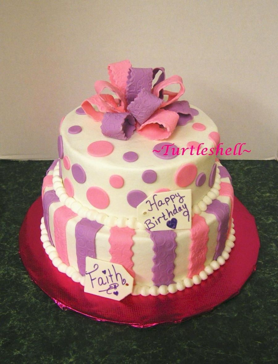 The ever popular pink & purple girlie cake! I love doing these type cakes & I love making gumpaste bows! Faith has been wanting one of my "wedding cakes" for awhile now. Her Mommy said I'd make her one just not so big :-) What a sweetie!
