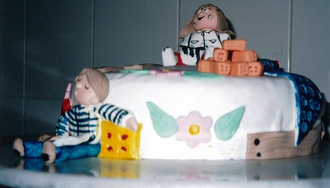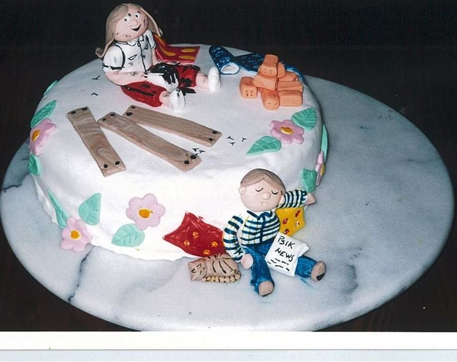 That's a 40th birthday cake for a friend that build a new house. Ana is the most speed up friend that I have, and her husband very quiet and relaxed. March 2004.