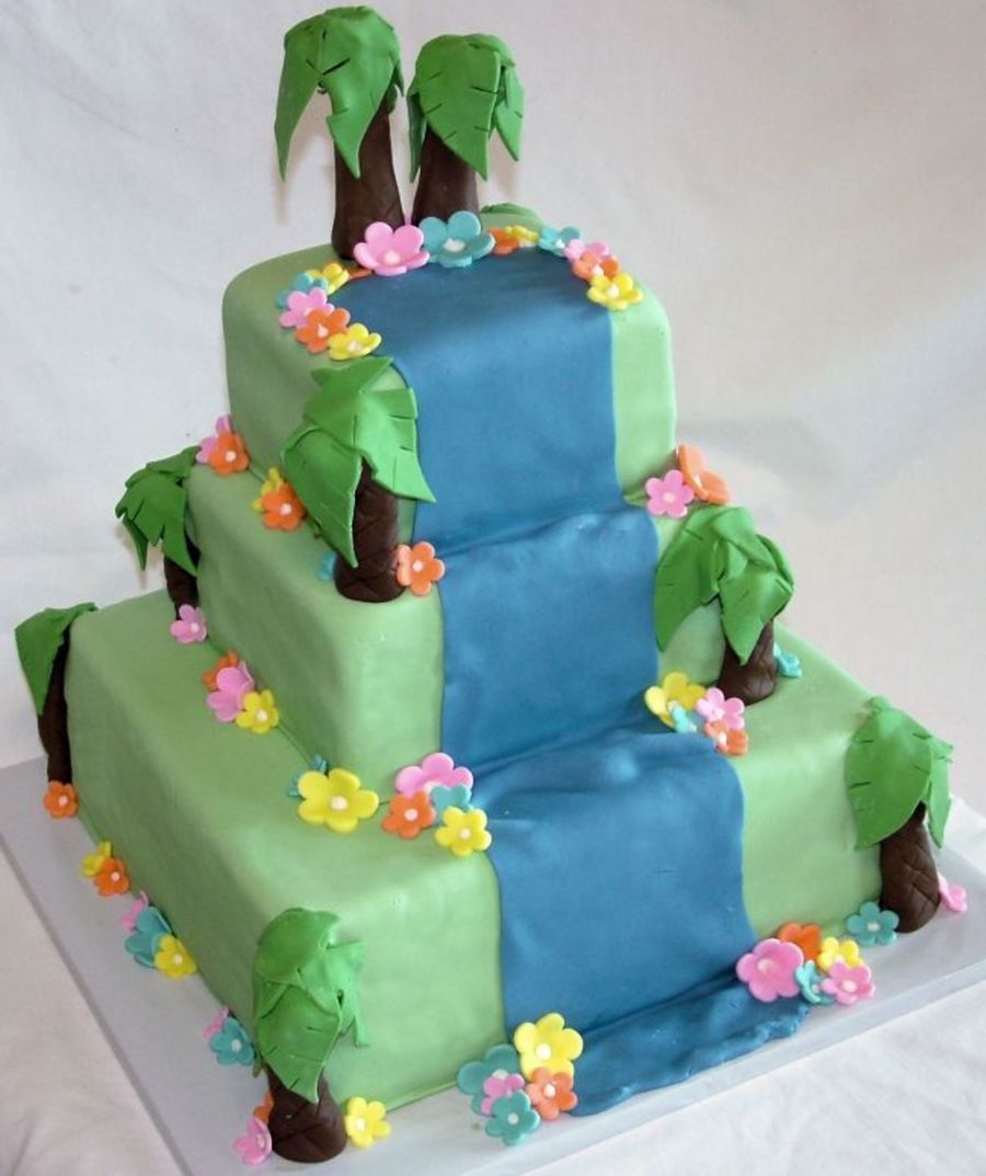 Another luau/beach themed cake :) 6" - 8" and 12" square tiers fondant covered.