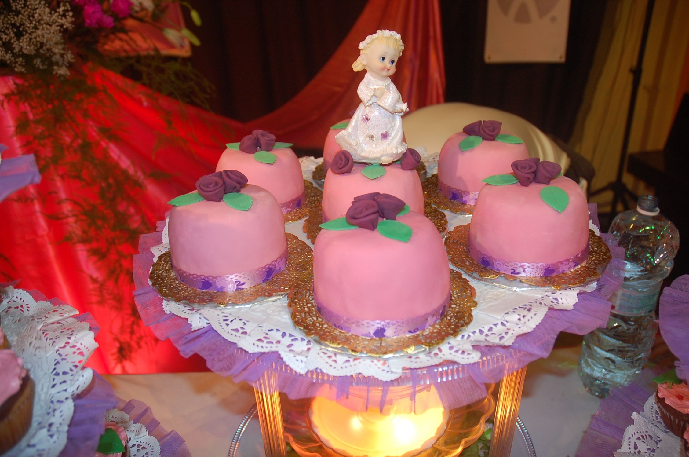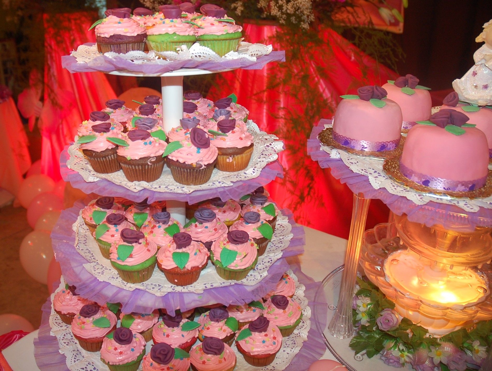 I did this for my 7 years old niece. 140 cupcakes and 7 small fondant covered cakes.