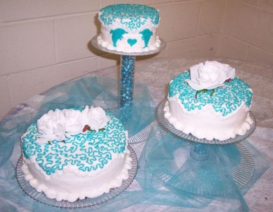 The bride loved dolphins, so I 'drew' some on the top tier.