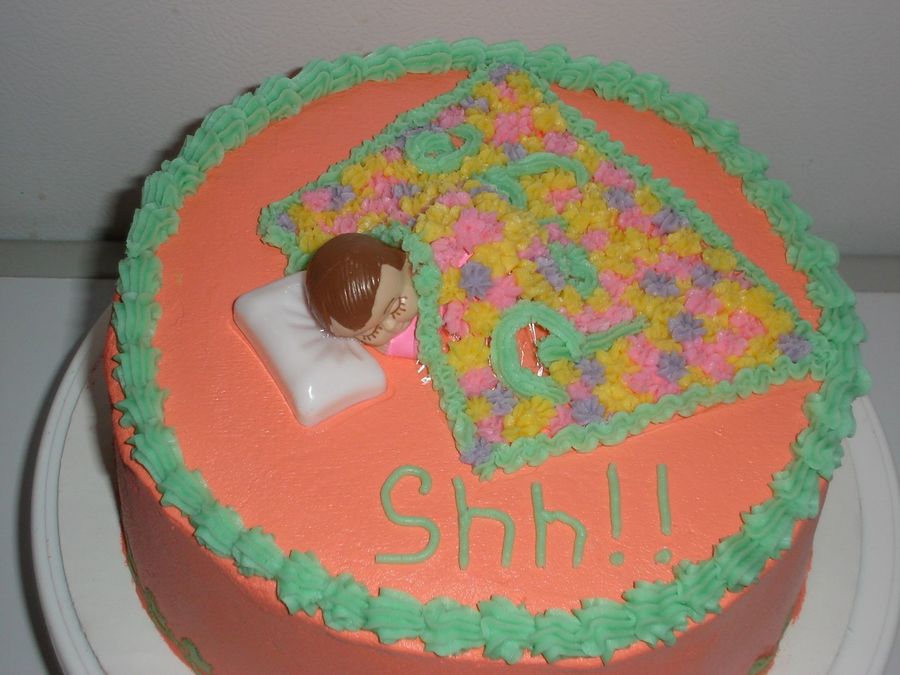 8' round, chocolate BC, blanket made from plastic wrap, applied stars and added babies name to blanket