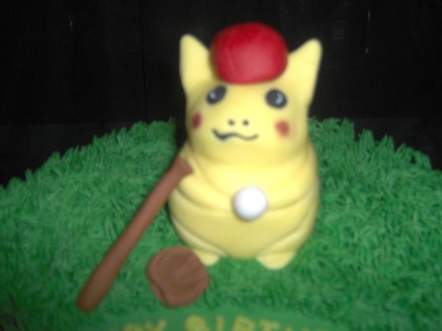 my version of a gumpaste/fondant picachu, with his backwards baseball hat - all ready for a game with his little league buddies at this birthday.