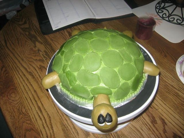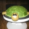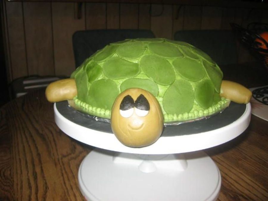 I used a 9" round and carved a dome shape. I decorated in Buttercream and used fondant accents.