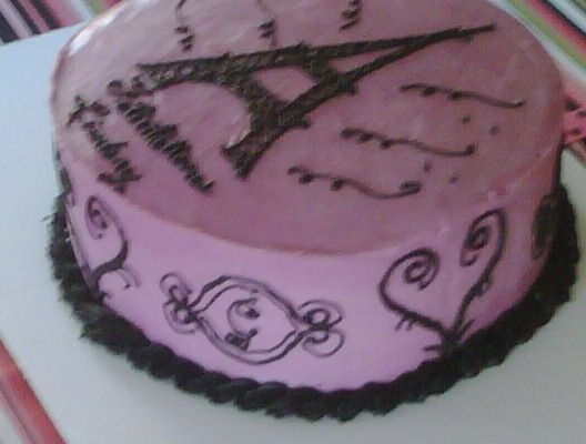 Pink in Paris was the theme of this shower. I free-handed the eiffel tower and used pattern stamps to draw the designs.