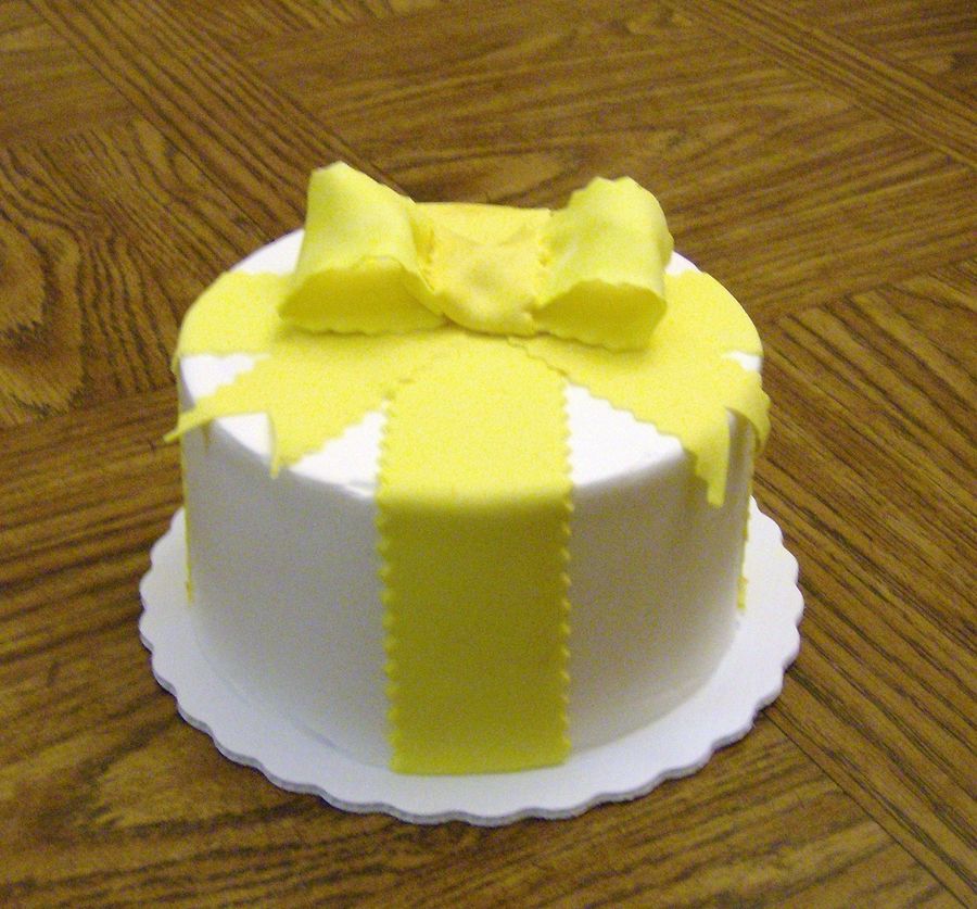 6" lemon cake with buttercream. Fondant ribbon and gumpaste bow.