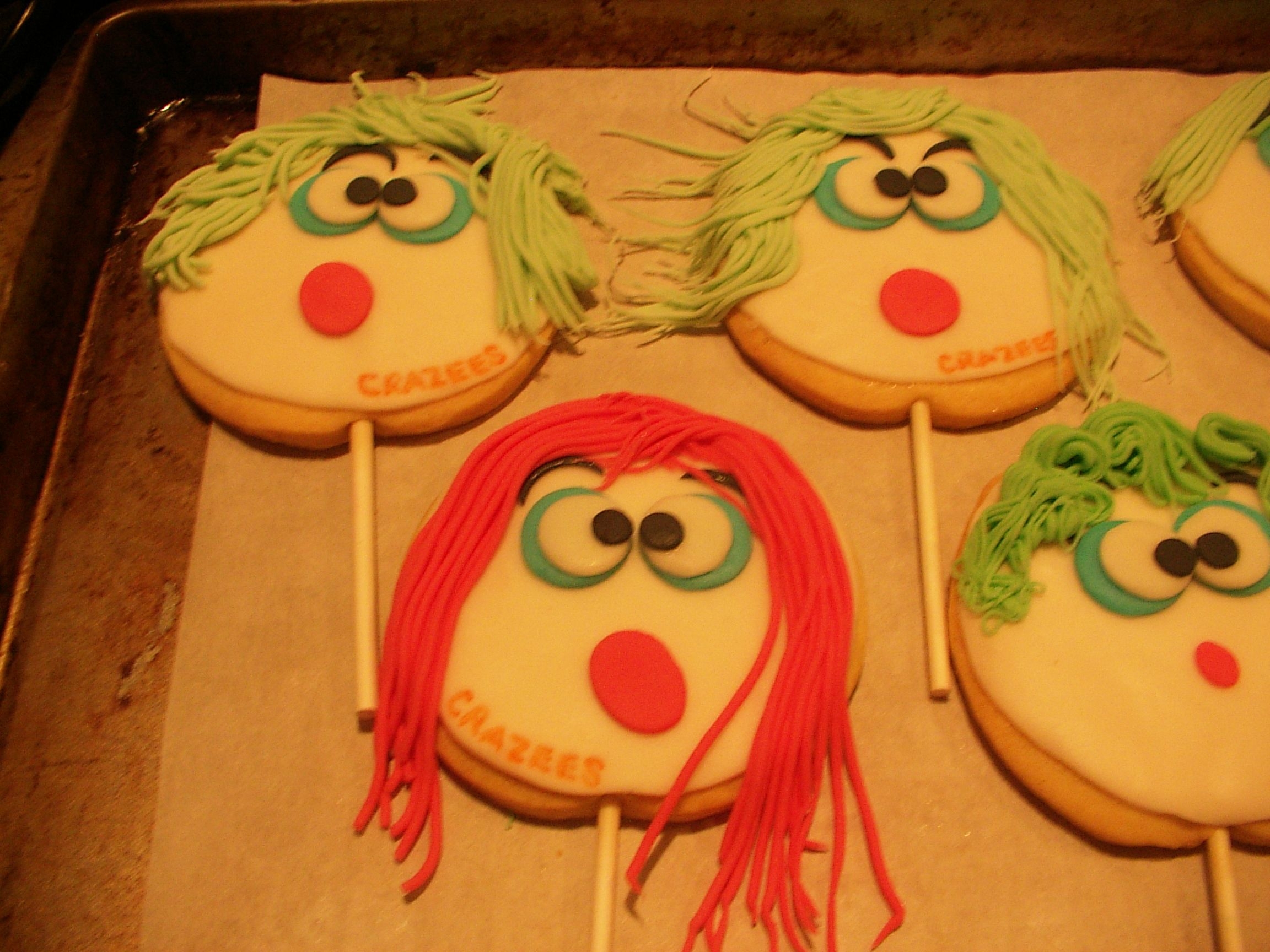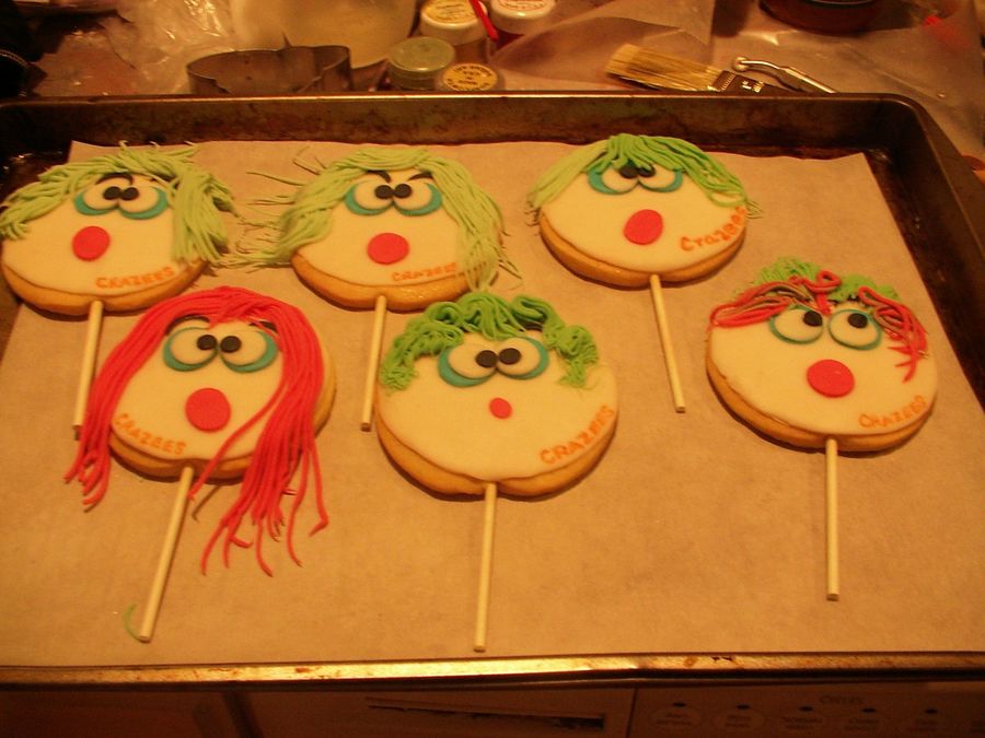 Just for fun for a local event in a very small town. sugar cookies baked on a stick, apricot glazed in fondant decor.