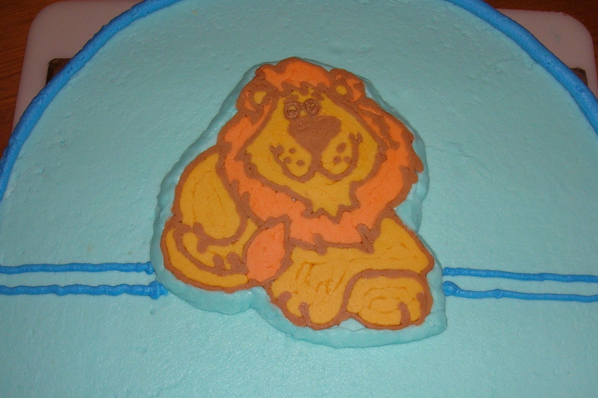 I made this cake for the my coworkers to welcome them back for a new school year. Our mascot is a lion and this was my 1st FBCT. The cake is vanilla with strawberry filling and covered in all BC.