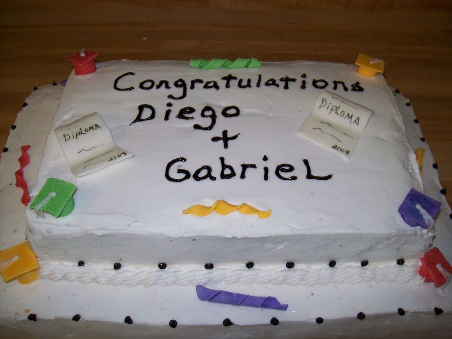 graduation cake covered with buttercream. The diplomas and caps were handmade with gum paste.