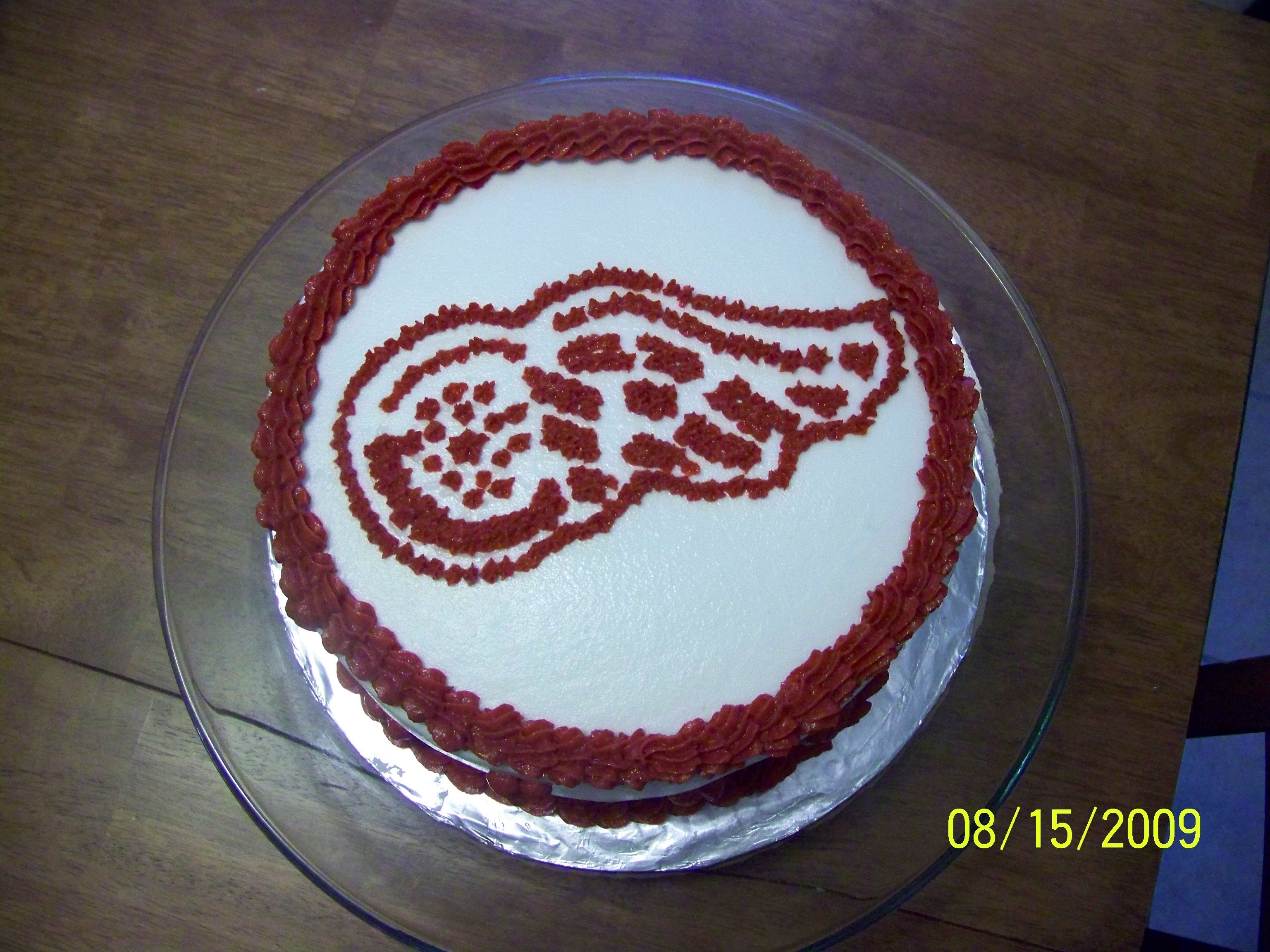 This is the attempt at using a Piping Gel transfer with a Red Wings Logo. It didn't go as planned. BUT I will attempt again!