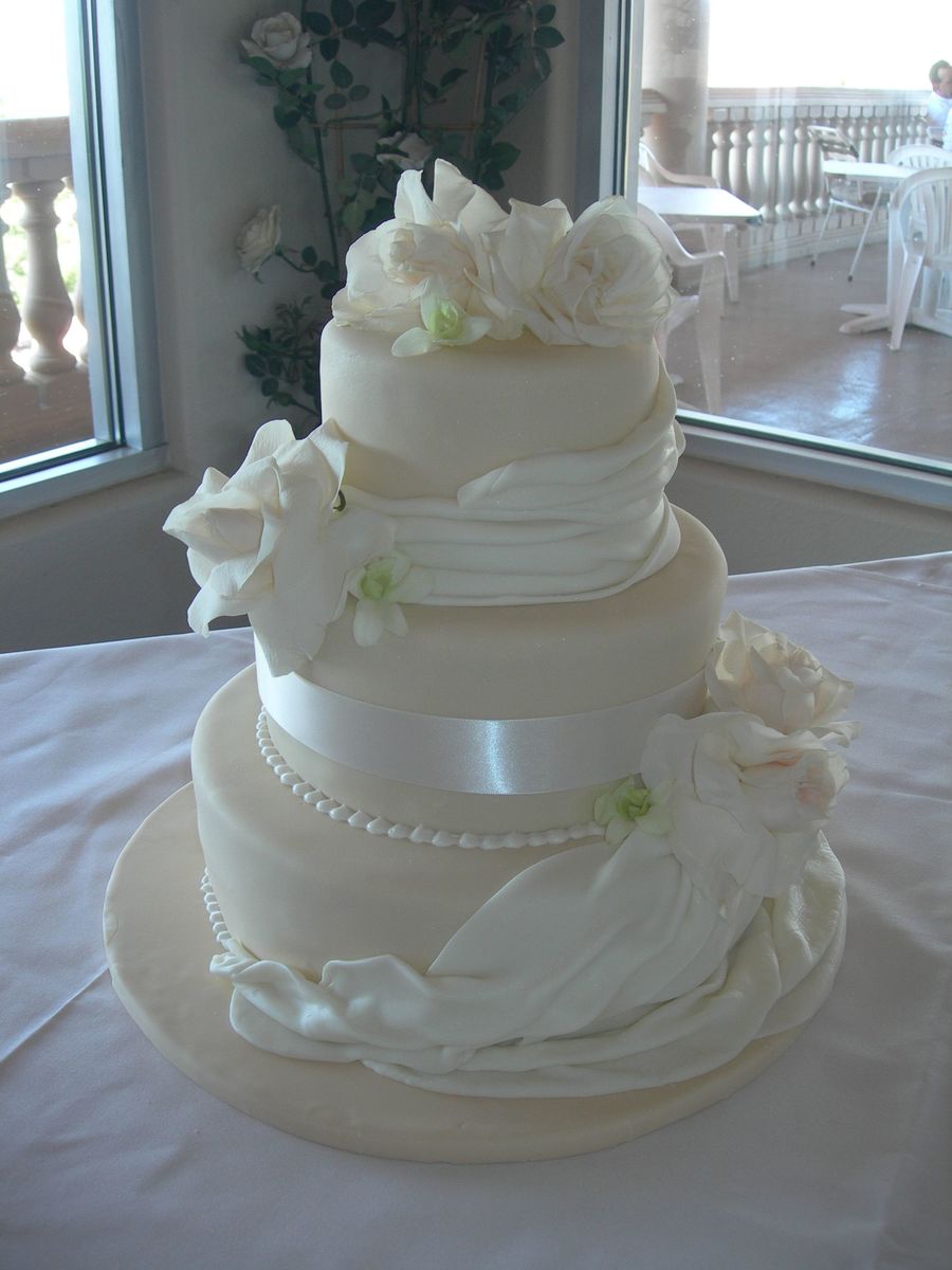My first attempt at drapery. Candy clay mixed with gumpaste. As for the flowers? Made by God---they are real.