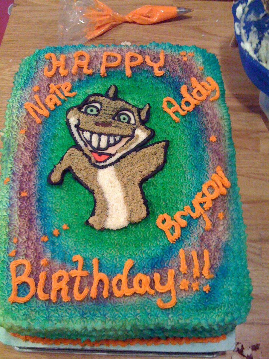 I made this for my triplet niece and nephews. It is chocolate with buttercream. The colors are airbrushed.