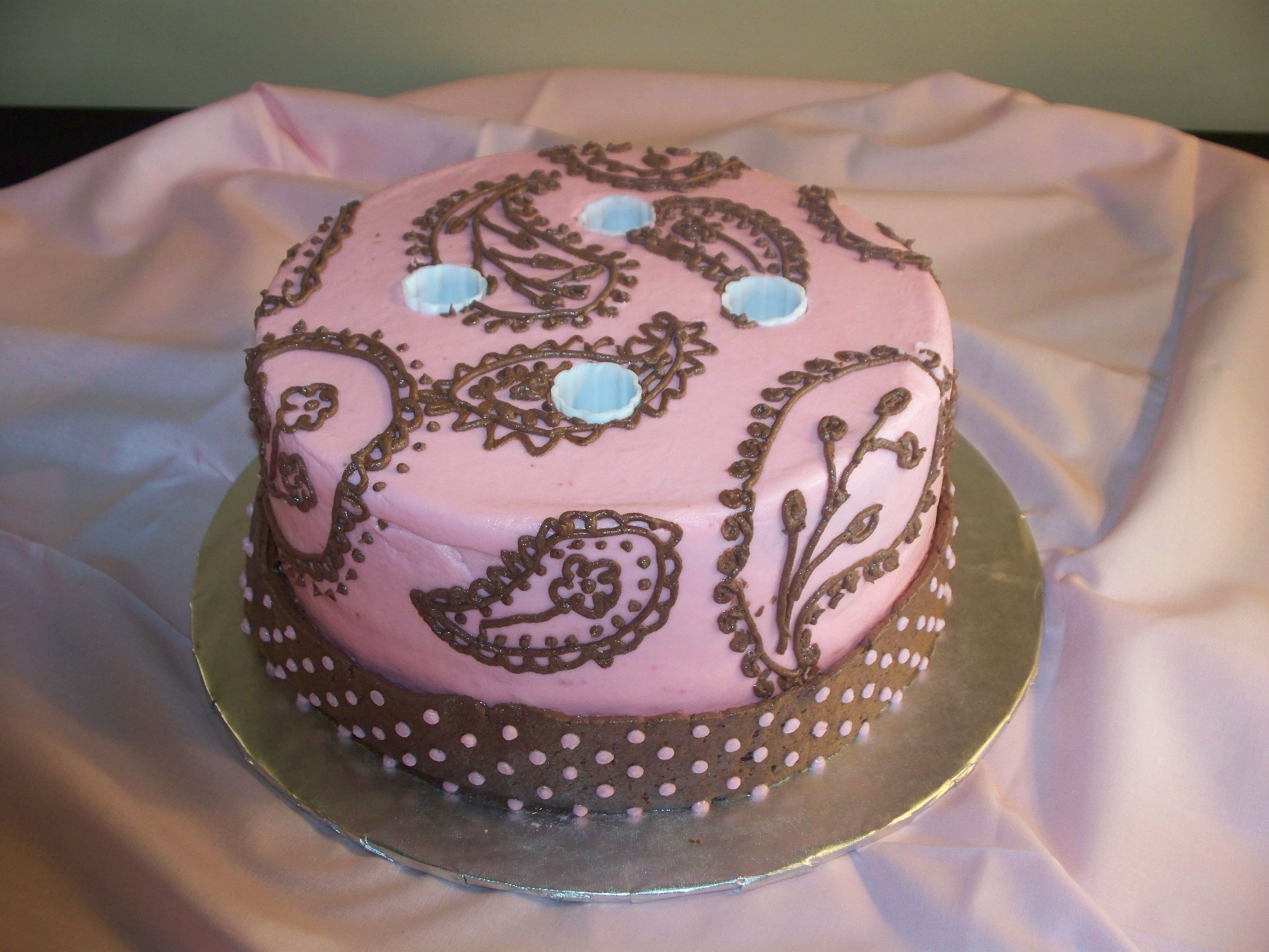 I HAD TO TRAVEL 2 HRS. TO DELIVER THIS CAKE TO A PLACE I'D NEVER BEEN. I WAS SO WORRIED ABOUT GETTING THERE AND BEING ON TIME THAT I DIDN'T EVEN THINK ABOUT PUTTING THE BORDER ON AFTER I GOT THERE. AND ON TOP OF THAT I FORGOT MY EMERGENCY INCING!!!! LUCKLY, IT WAS A BABY SHOWER FOR A FAMILY MEMBER, AND THEY DIDN'T CARE ABOUT THE BORDER. THEY LOVED IT ANYWAY.