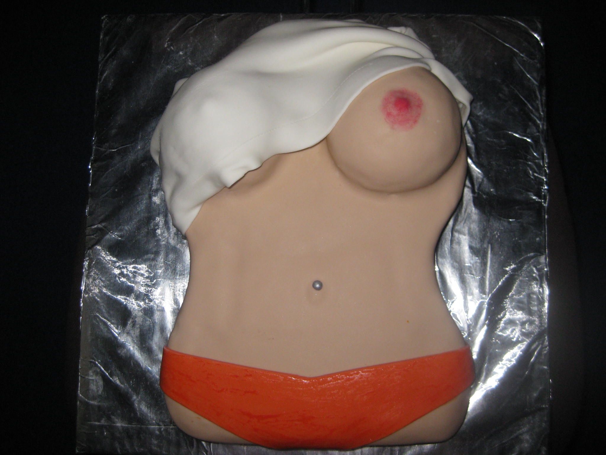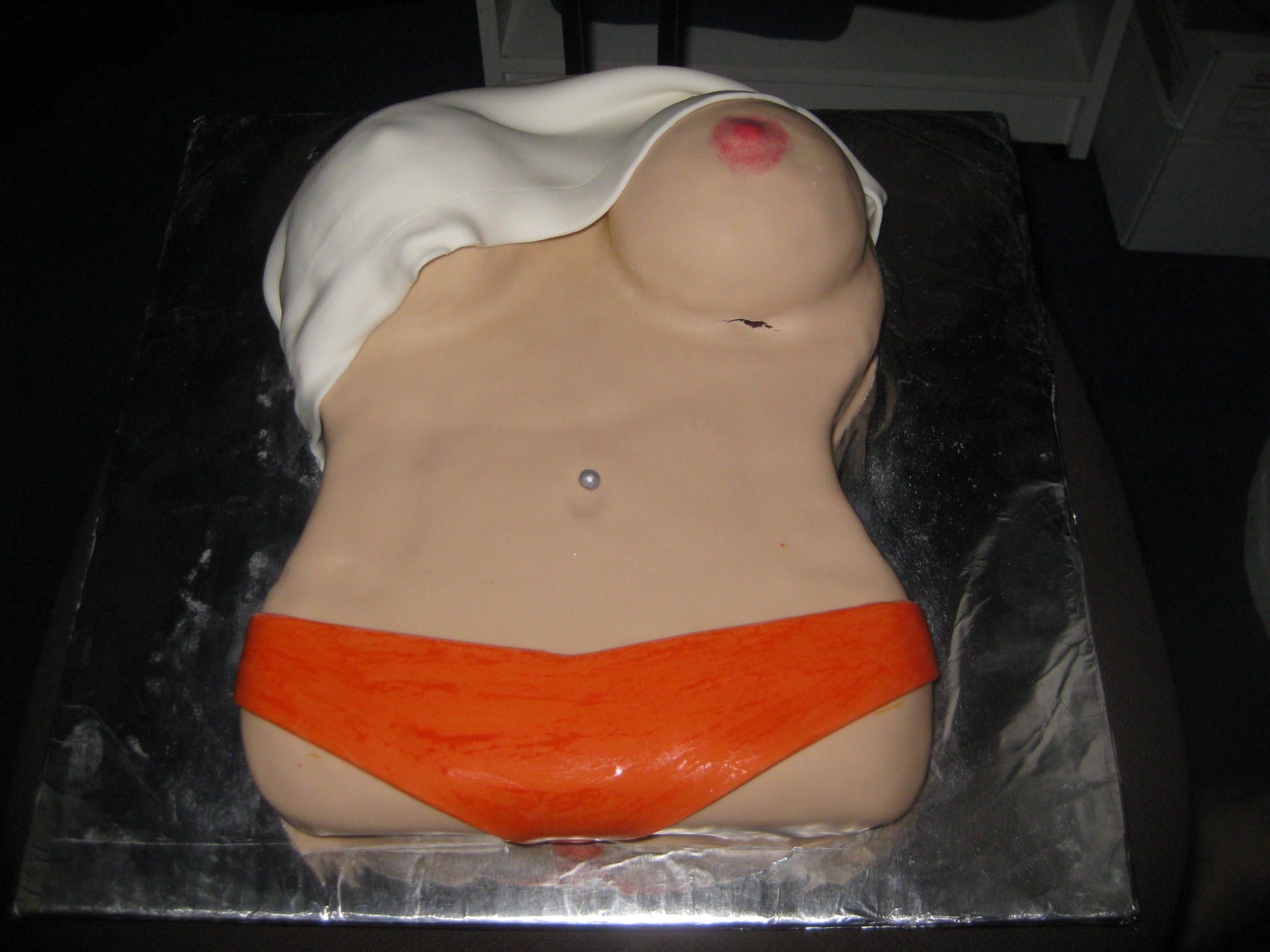 This cake was originally naked but had to cover the problem with a bra 5 minutes before the party.